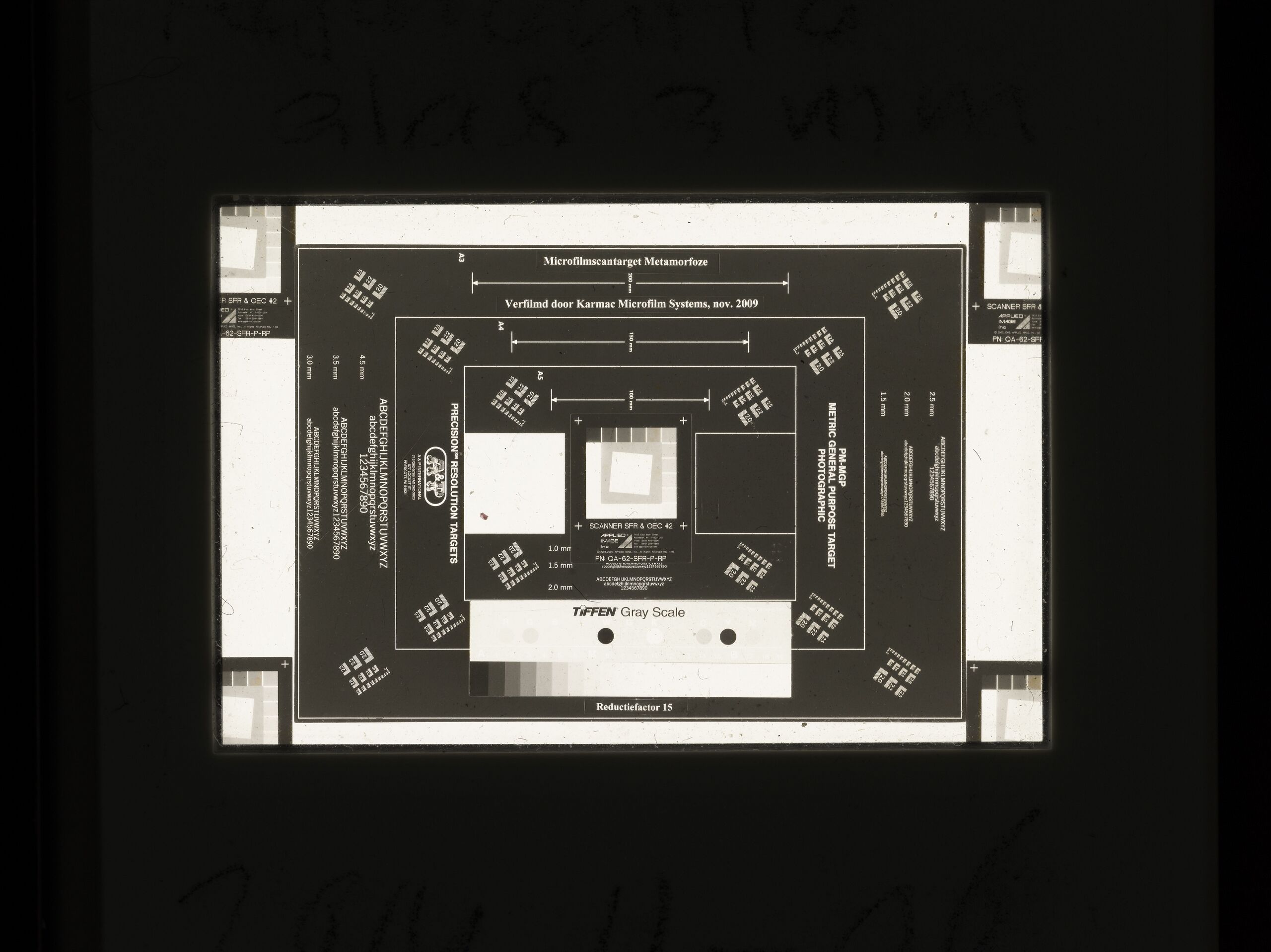 Foto: SFR-target van Applied image, gebruikt door het digitaliseringsfirma GMS om de scherpte van de camera af te stellen.