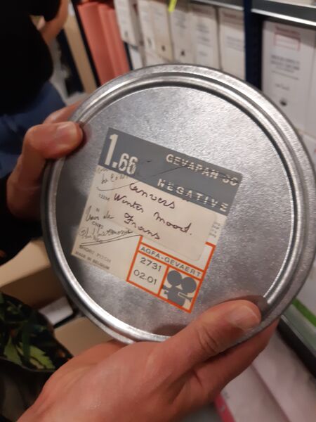 Tijdens het bezoek aan het archief van het Antwerp Symphony Orchestra vroegen de medewerkers wat er met deze oude filmrol moesten doen - Foto: CEMPER