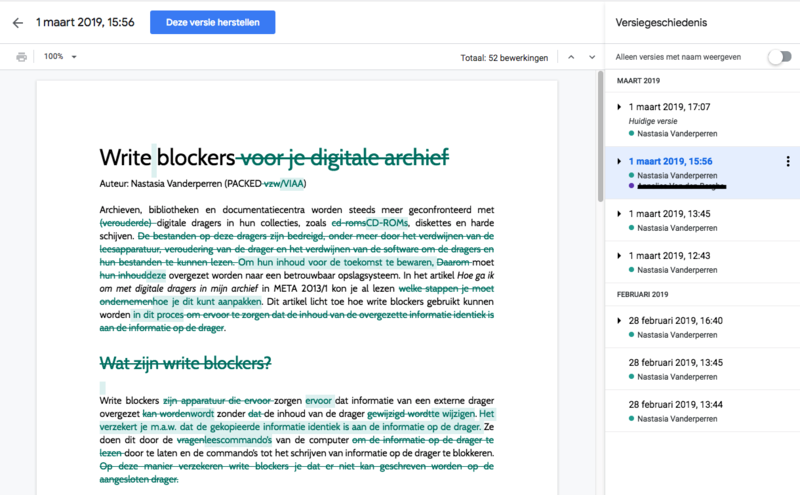 Klik op een datum/tijd om het bestand te zien zoals het destijds was.