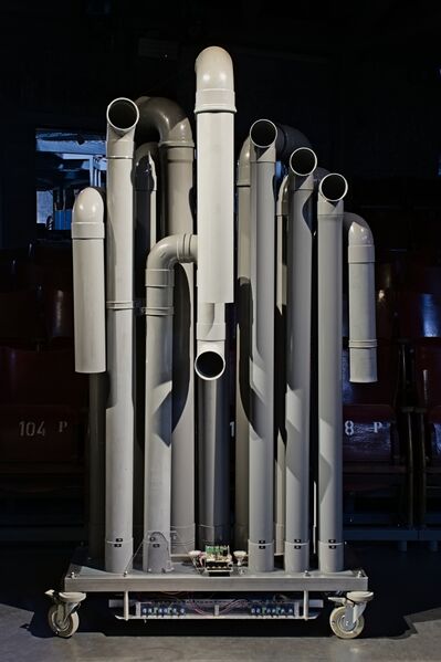 | Beschrijving | Nederlands: Vooraanzicht van het muziekinstrument HybrLo, gebouwd door Godfried-Willem Raes.