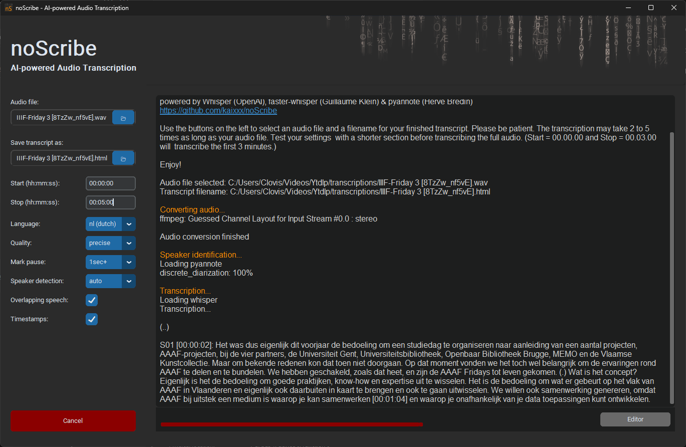 - Spraak-naar-tekst transcriptie met noScribe/nl