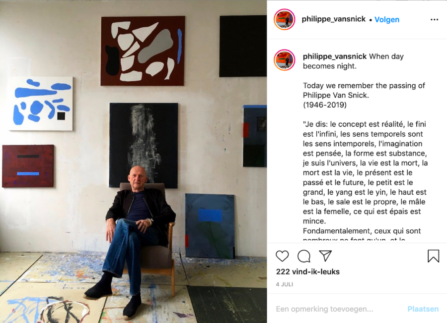 Schermafbeelding van de Instagram-account van de Philippe Van Snick Estate. De archivering van dit profiel is een pilootproject in samenwerking met Centrum Kunstarchieven Vlaanderen / M HKA