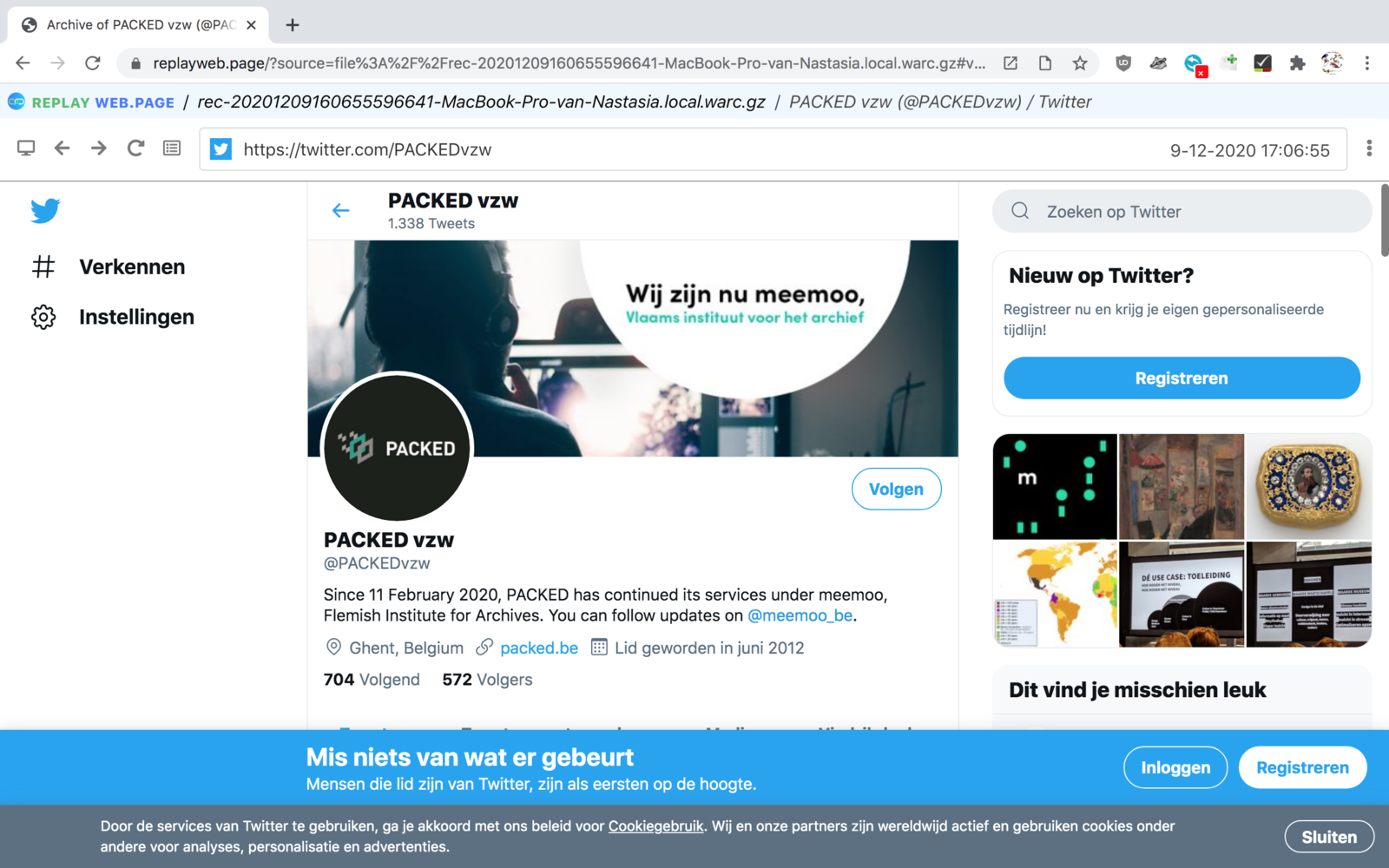 Klik op een datum/tijd om het bestand te zien zoals het destijds was.