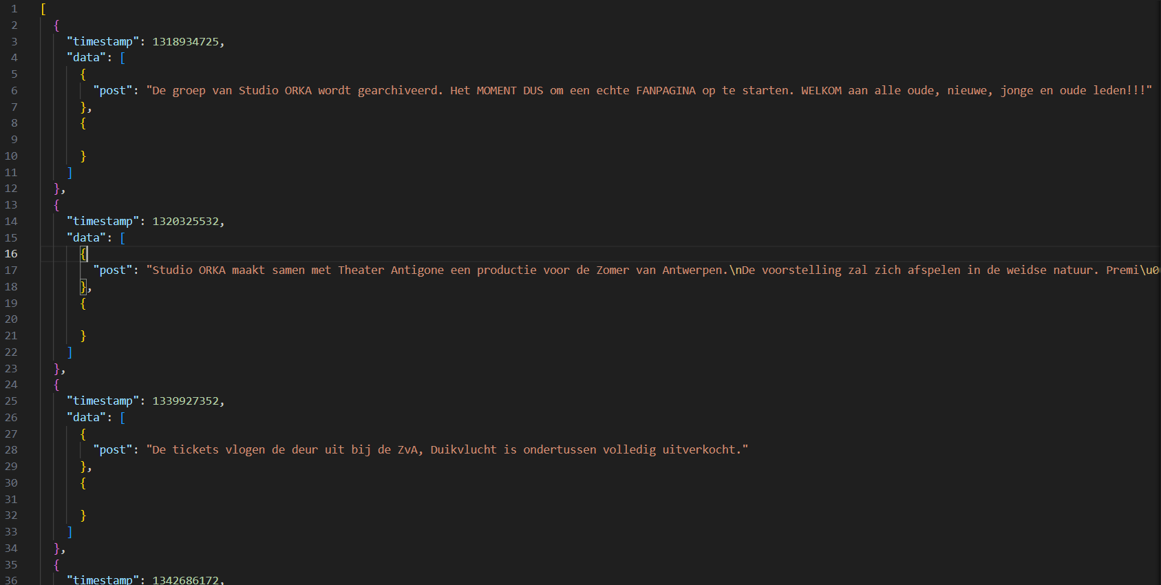 Screenshot van output in JSON formaat