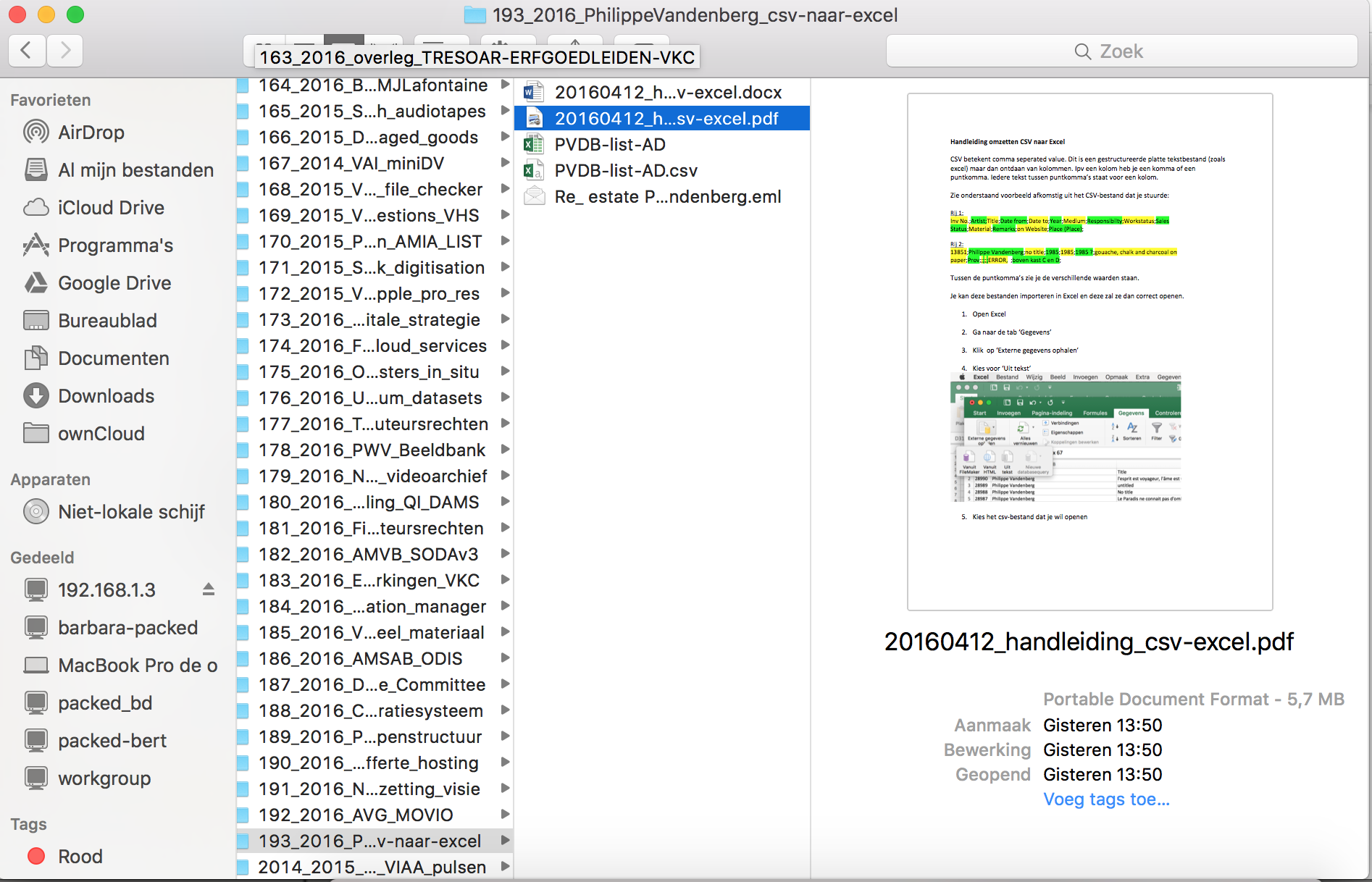 Klik op een datum/tijd om het bestand te zien zoals het destijds was.