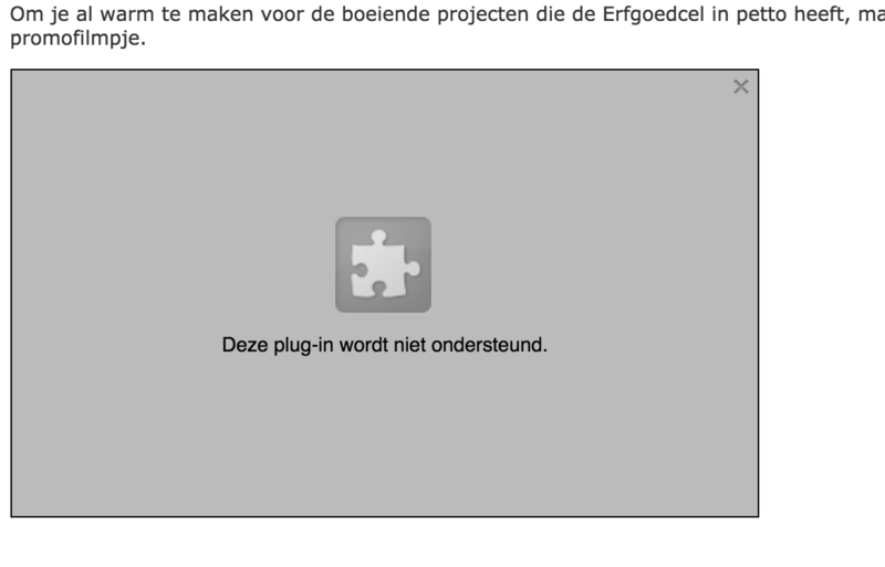 | Beschrijving | English: Een plug-in wordt niet meer ondersteund door een moderne browser.