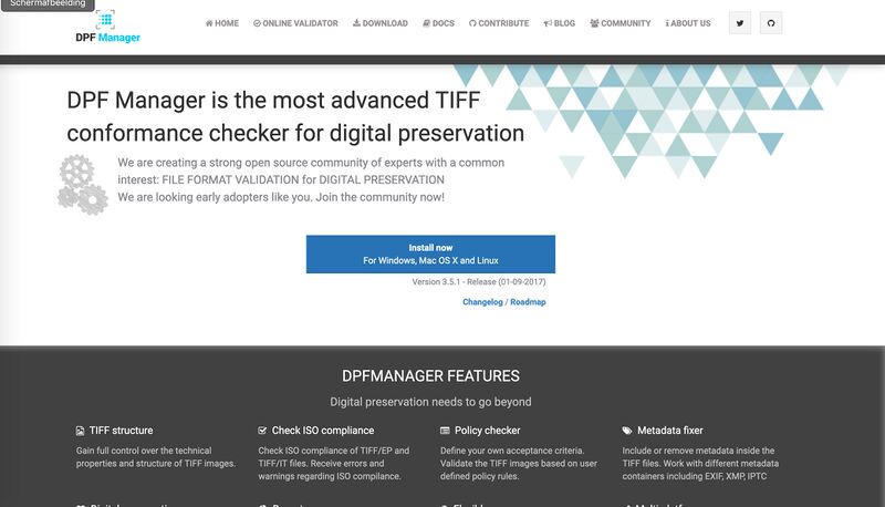 DPF Manager is een open source tool voor de controle van TIFF-bestanden die bijzonder gebruiksvriendelijk is. Via een eenvoudige interface toont DPF Manager of je TIFF-bestand voldoet aan de juiste TIFF-specificatie. Voldoet je bestand niet, dan geeft de tool ook aan waarom niet.