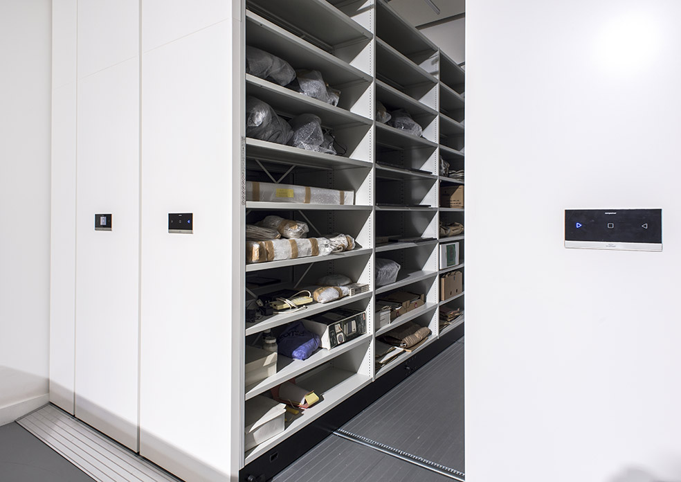 - De zuurvrije dozen bewaren we op hun beurt in of op rekken met metalen leggers.
