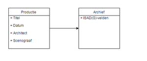 Voor een optimale ontsluiting werd uitgegaan van een eenvoudig model, waarbij het archief voornamelijk wordt ontsloten aan de hand van gegevens over de producties (tentoonstellingen, lezingen, debatavonden…). Producties moeten kunnen worden gevonden aan de hand van titel, datum, deelnemende architect(en) en scenograaf. Vanuit de productie wordt de gebruiker vervolgens doorverwezen naar relevante archiefbestanddelen, zoals het productiedossier of een reeks speeches.